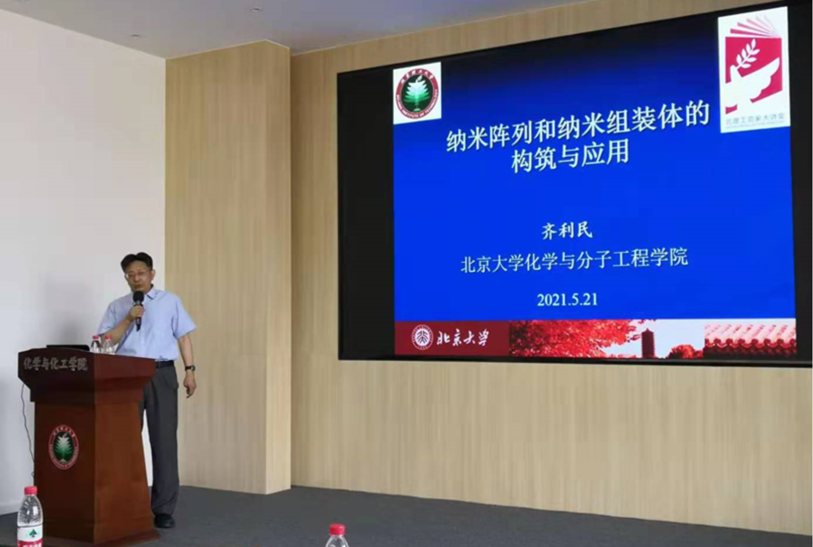 应马玉荣教授邀请,2021年5月21日上午,北京大学化学与分子工程学院齐利民教授到访yl6809永利官网,并作题目为“纳米阵列和纳米组装体的构筑与应用”的学术报告,此次报告是yl6809永利官网“百家大讲堂”系列讲座之一。王振华书记、曹敏花教授等50余名师生参加此次报告会。